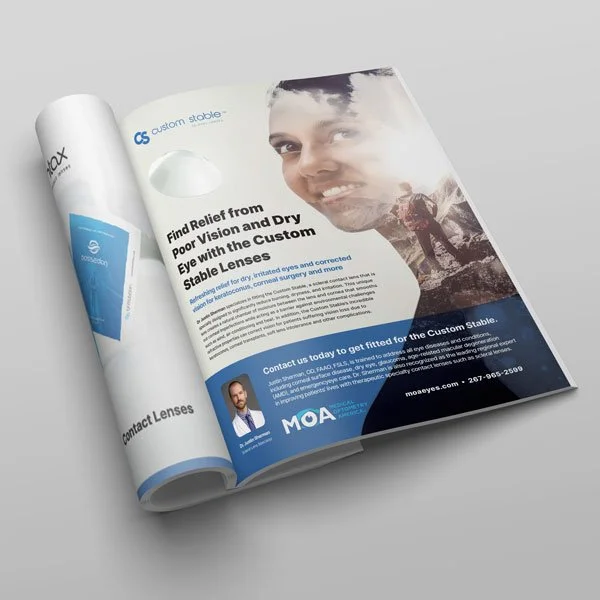 This high quality poster is a great addition to your practice. It introduces the Custom Stable to your patients, triggers interest, highlights all the great benefits this life changing lens offers and let’s patient know you specialize in the Custom Stable lens.
