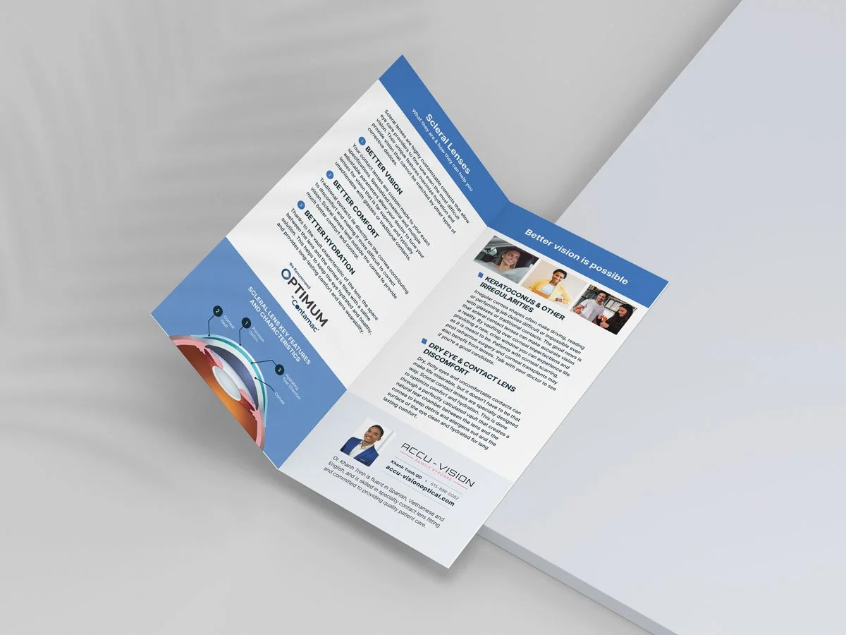 This bi-fold rack card is a great piece for patients who might be candidates for scleral lenses. This item explains what scleral lenses are, the conditions they treat, how they work while also addressing several common questions. Also available as an interactive pdf.